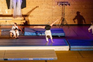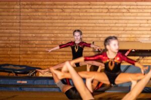 Tänzerische Elemente, schwungvolles Bodenturnen und Akrobatik am Stufenbarren, dem Schwebebalken, dem Trampolin und dem Stufenreck sind nur ein paar Elemente der kunstvollen Aufführung.
