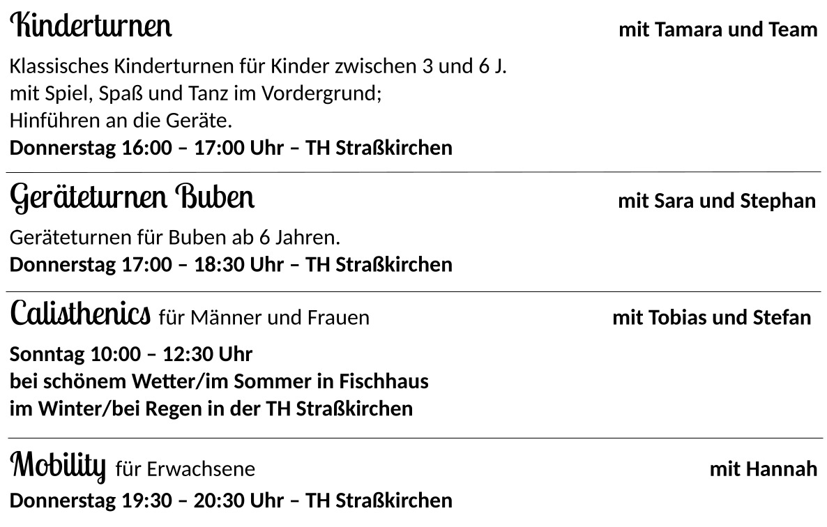 Programm Turnabteilung – Stand Juli 2025
